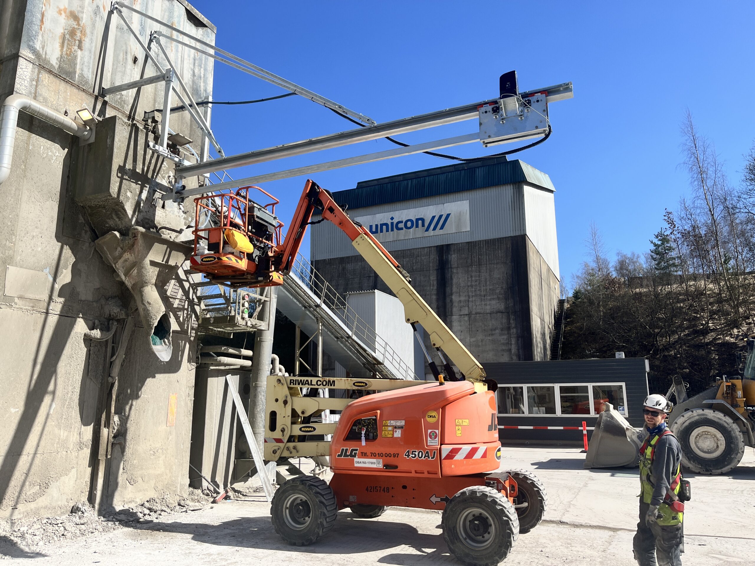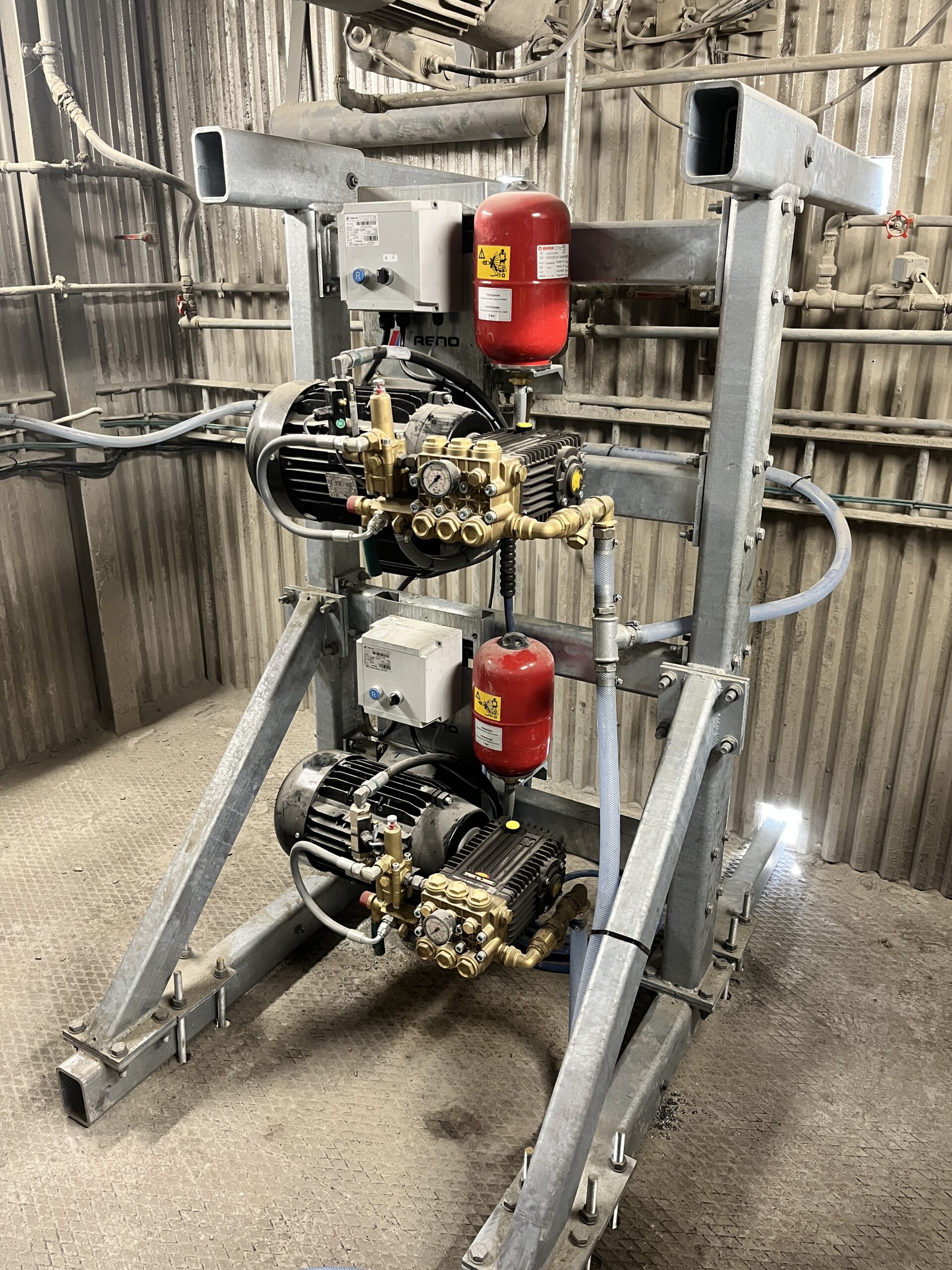 For en kunde i Fredericia har vi fremstillet og monteret et specielt rengøringssystem for automatisk rengøring af en fritfaldsblander